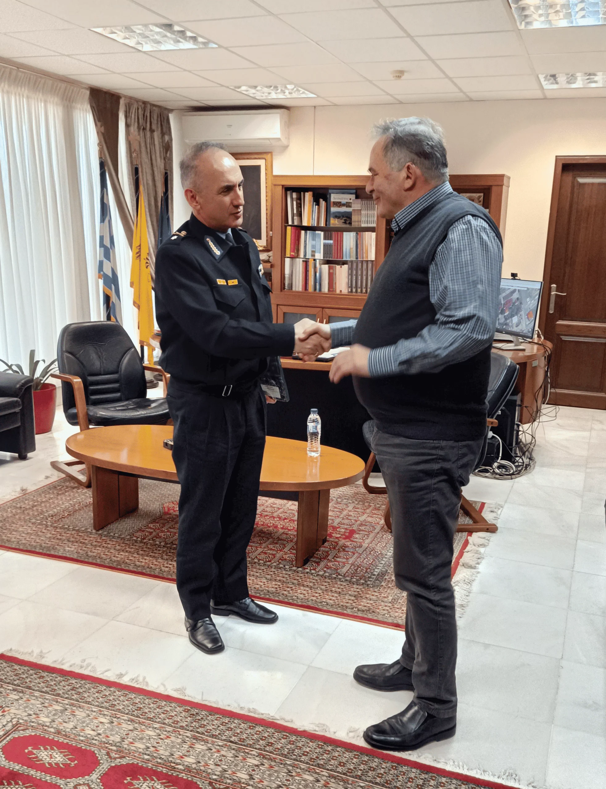 Εθιμοτυπική επίσκεψη πραγματοποιήθηκε, σήμερα 21 Φεβρουαρίου 2025, στο Γραφείο του Αντιπεριφερειάρχη της Π.Ε. Γρεβενών, Ιωάννη Τσακνάκη, του νέου Διοικητή της Περιφερειακής Πυροσβεστικής Διοίκησης Δυτικής Μακεδονίας, Αρχιπύραρχου, Ιωάννη Αμανατίδη.