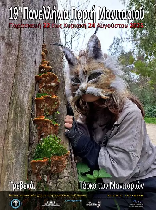 Η 19η Πανελλήνια Γιορτή Μανιταριού προγραμματίστηκε φέτος για το τριήμερο 22-24 Αυγούστου, στο Πάρκο των μανιταριών, στα Γρεβενά. Πρόκειται για το κορυφαίο γεγονός μανιταροφιλίας και μανιταρογνωσίας στην Ελλάδα, μία από τις μεγαλύτερες πολιτιστικές εκδηλώσεις στη Δυτική Μακεδονία και την μεγαλύτερη γιορτή μανιταριού -που οργανώνεται από μανιταροφιλικό σύλλογο- στον πλανήτη.