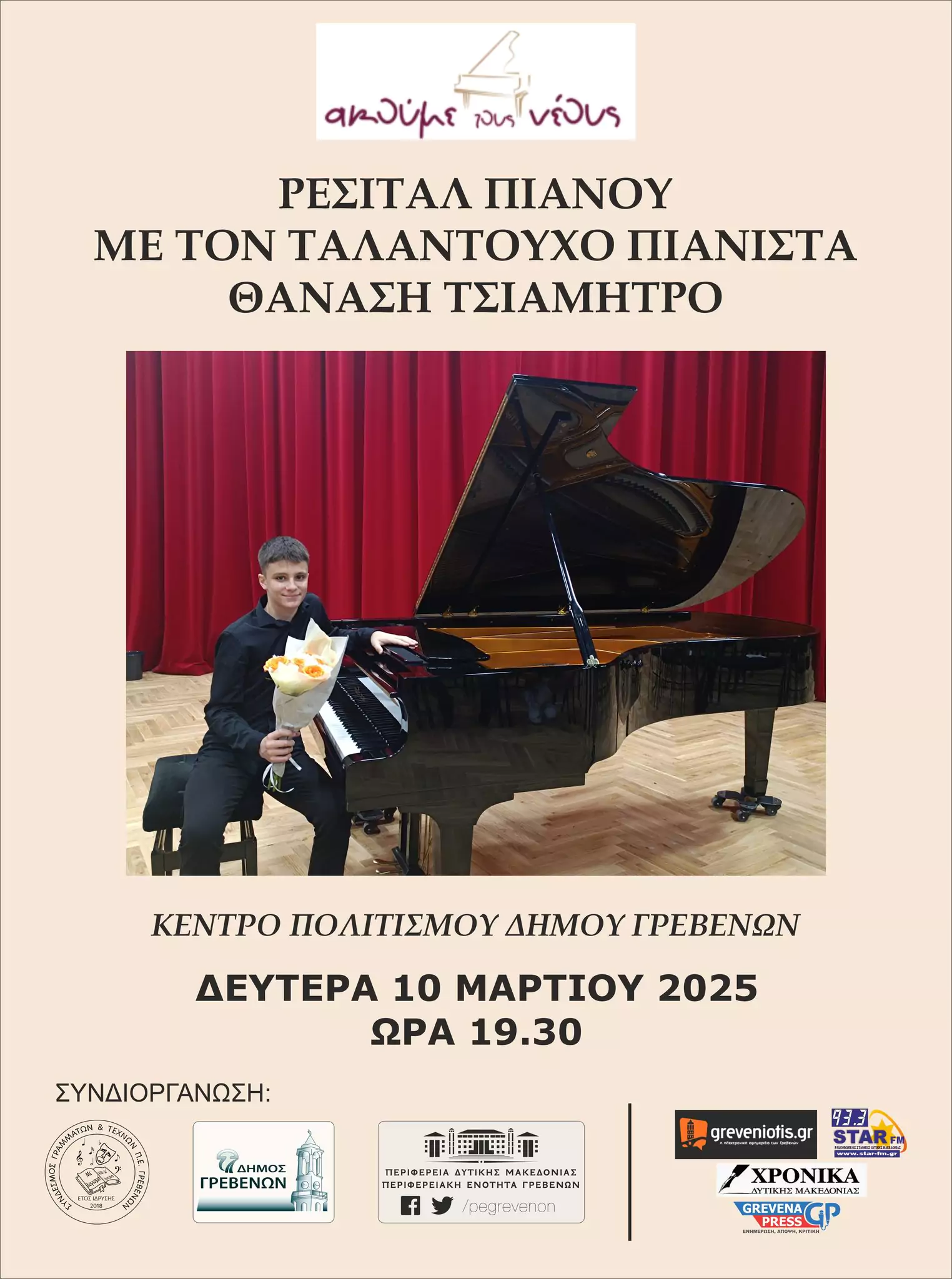 Ρεσιτάλ πιάνου με τον ταλαντούχο Γρεβενιώτη πιανίστα Θανάση Τσιαμήτρο