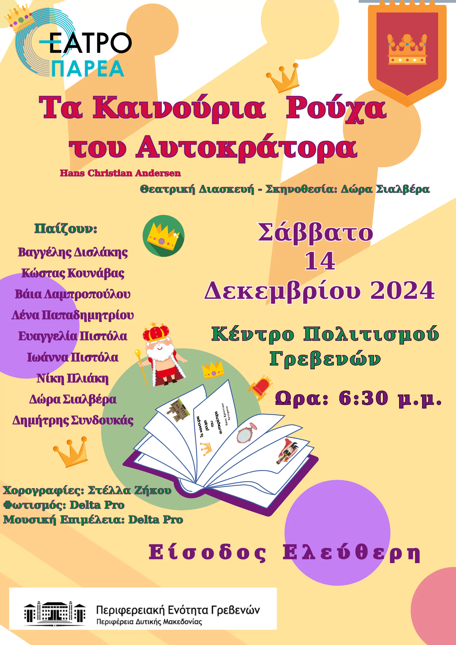 Η παράσταση θα δοθεί το Σάββατο 14 Δεκεμβρίου 2024 στο Κέντρο Πολιτισμού Γρεβενών.