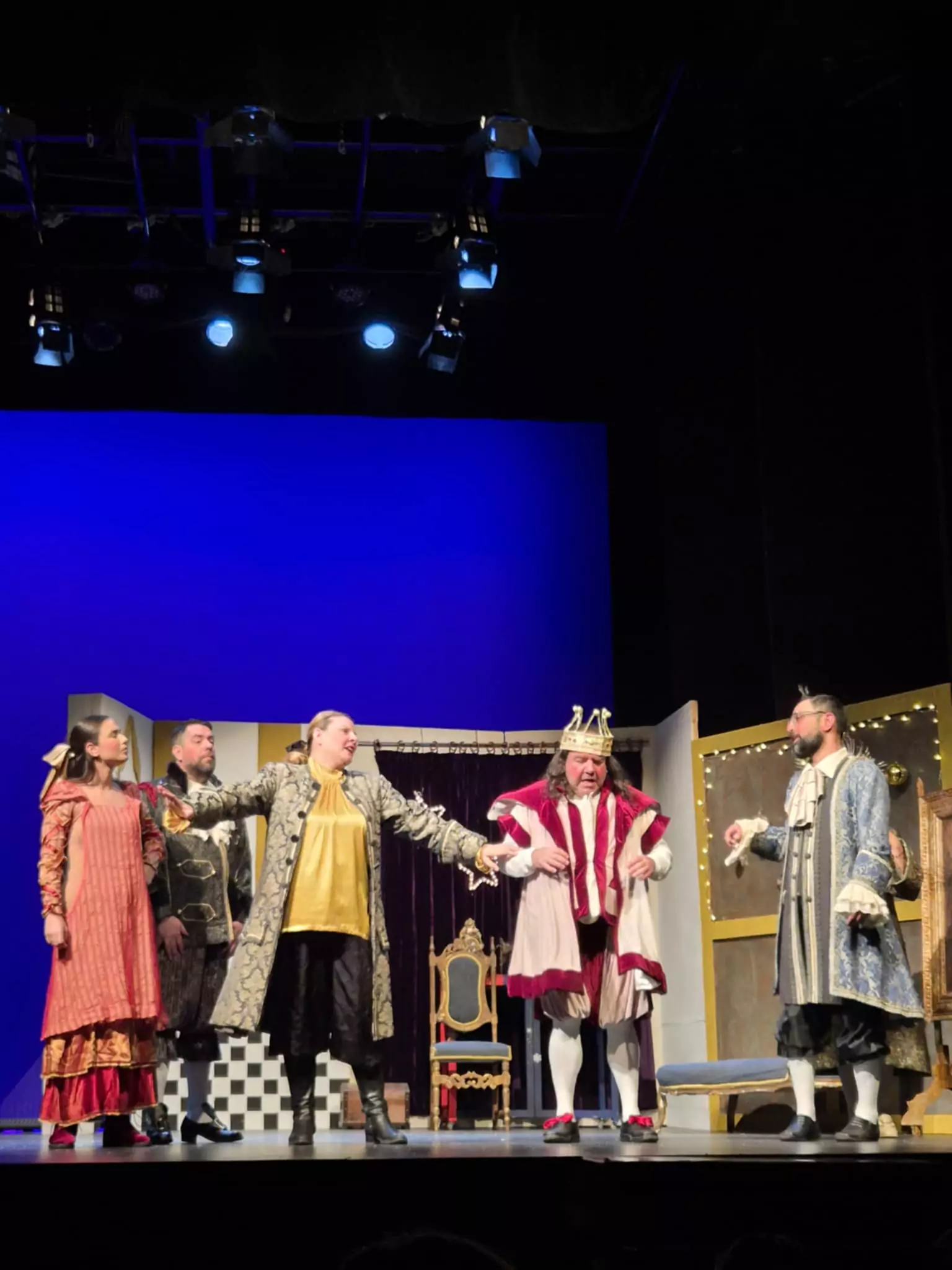 Μαζί του βλέπουμε αυλικούς, υπουργούς και κόλακες της εξουσίας που συνήθισαν να λένε μόνο «ναι» στο βασιλιά, για να μπορούν να υπάρχουν δίπλα του. Το μπέρδεμα όλων αυτών σε μια ιστορία με δράση, χιούμορ και πολλά ευτράπελα δημιουργεί μια μοναδική ξεκαρδιστική παράσταση γεμάτη χρώματα και μουσικές.