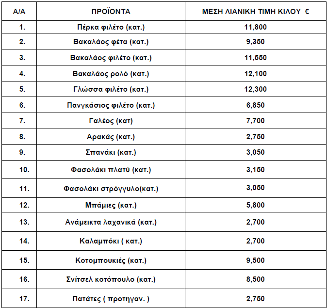 Οι διαμορφωθείσες μέσες λιανικές τιμές κατά τον μήνα Φεβρουάριο 2025 στα παρακάτω αναγραφόμενα είδη που προσφέρονται στις προμήθειες του Δημοσίου, Νοσηλευτικών Ιδρυμάτων και Ν.Π.Δ.Δ., χωροταξικής αρμοδιότητας της Π.Ε. Γρεβενών έχουν ως εξής: