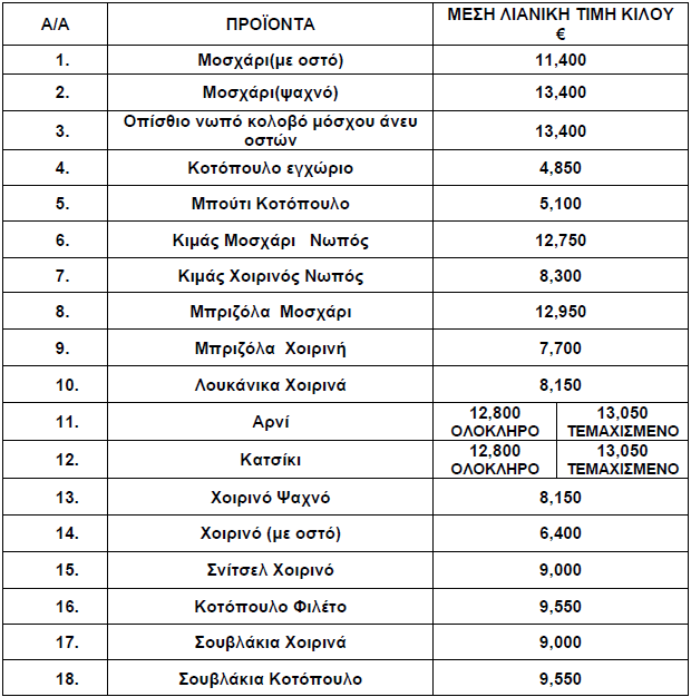 Πώς κυμάνθηκαν οι τιμές κρεάτων και πουλερικών τον Ιανουάριο του 2025, σύμφωνα με τις τιμοληψίες του Τμήματος Εμπορίου της Διεύθυνσης Βιομηχανίας, Εμπορίου, Παιδείας και Απασχόλησης της Περιφερειακής Ενότητας Γρεβενών.