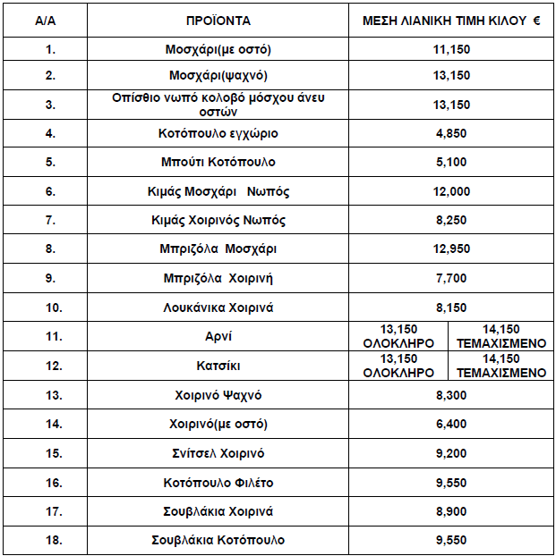 ΔΕΛΤΙΟ ΠΙΣΤΟΠΟΙΗΣΗΣ ΤΙΜΩΝ ΚΡΕΑΤΩΝ ΚΑΙ ΠΟΥΛΕΡΙΚΩΝ – ΜΗΝΑΣ ΟΚΤΩΒΡΙΟΣ 2024