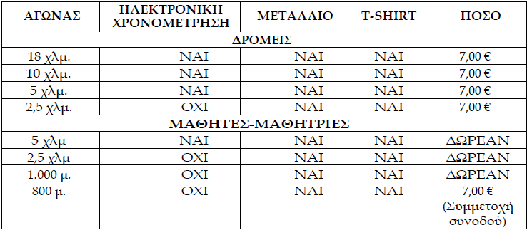 Η συμμετοχή στους αγώνες έχει συμβολικό κόστος συμμετοχής 7 Ευρώ για τους ενήλικες, ενώ για τους μαθητές-τριες είναι ΔΩΡΕΑΝ. Επίσης οι φοιτητές/τριες συμμετέχουν με μειωμένο κόστος συμμετοχής 3 Ευρώ.