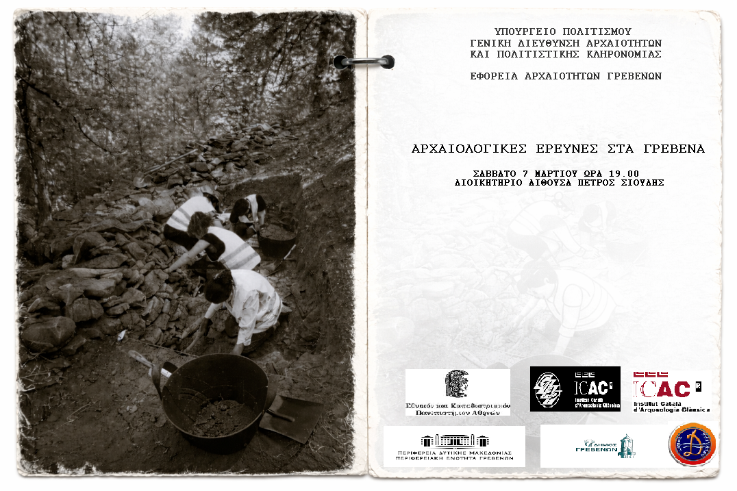 Η Εφορεία Αρχαιοτήτων Γρεβενών και η Περιφερειακή Ενότητα Γρεβενών συνδιοργανώνουν εκδήλωση το Σάββατο 7 Μαρτίου και ώρα 19.00, στην αίθουσα «Πέτρος Σούλης» στο Διοικητήριο όπου θα παρουσιασθούν τα αποτελέσματα της ανασκαφικής έρευνας κατά το 2025 στα Γρεβενά.